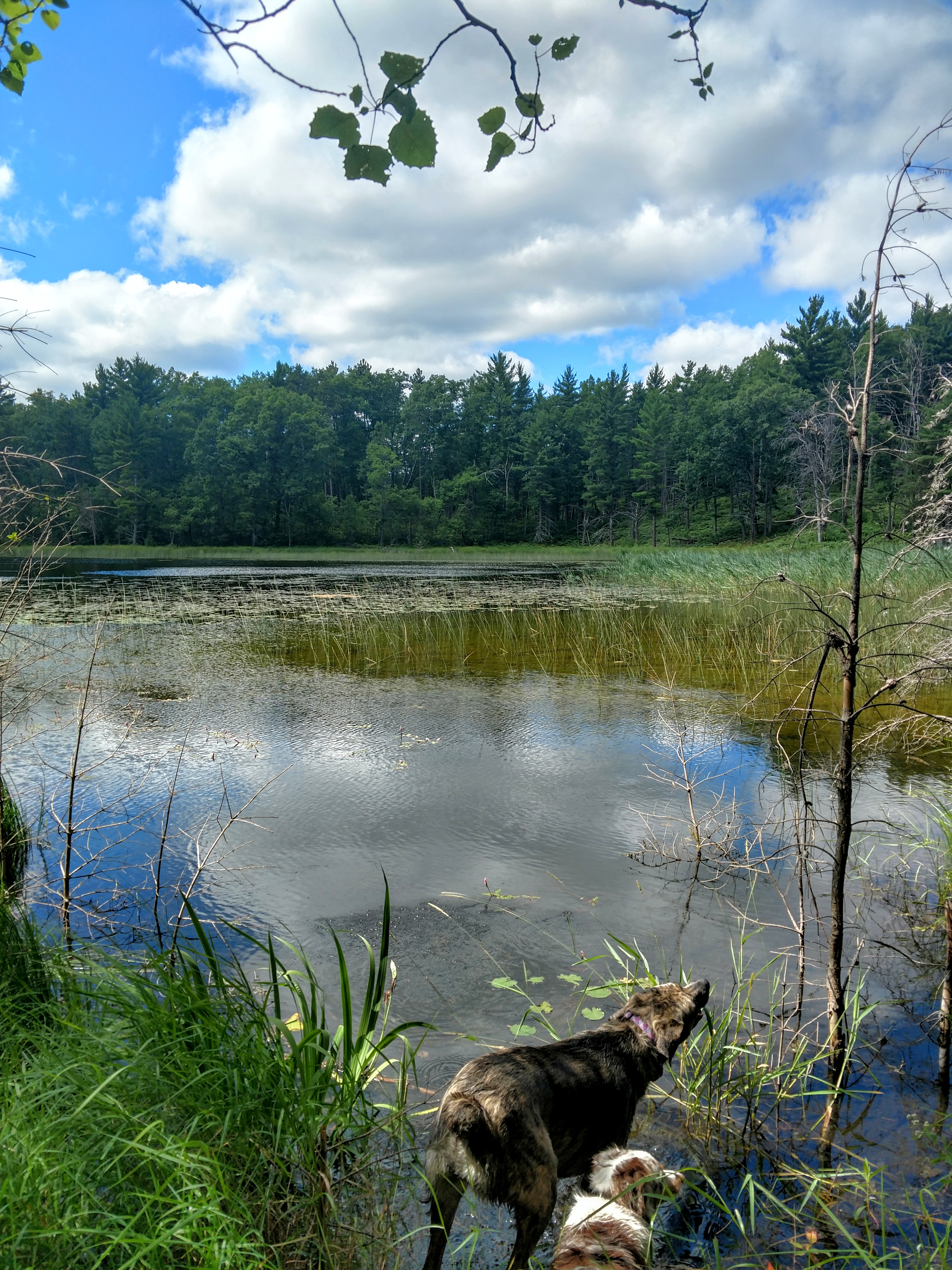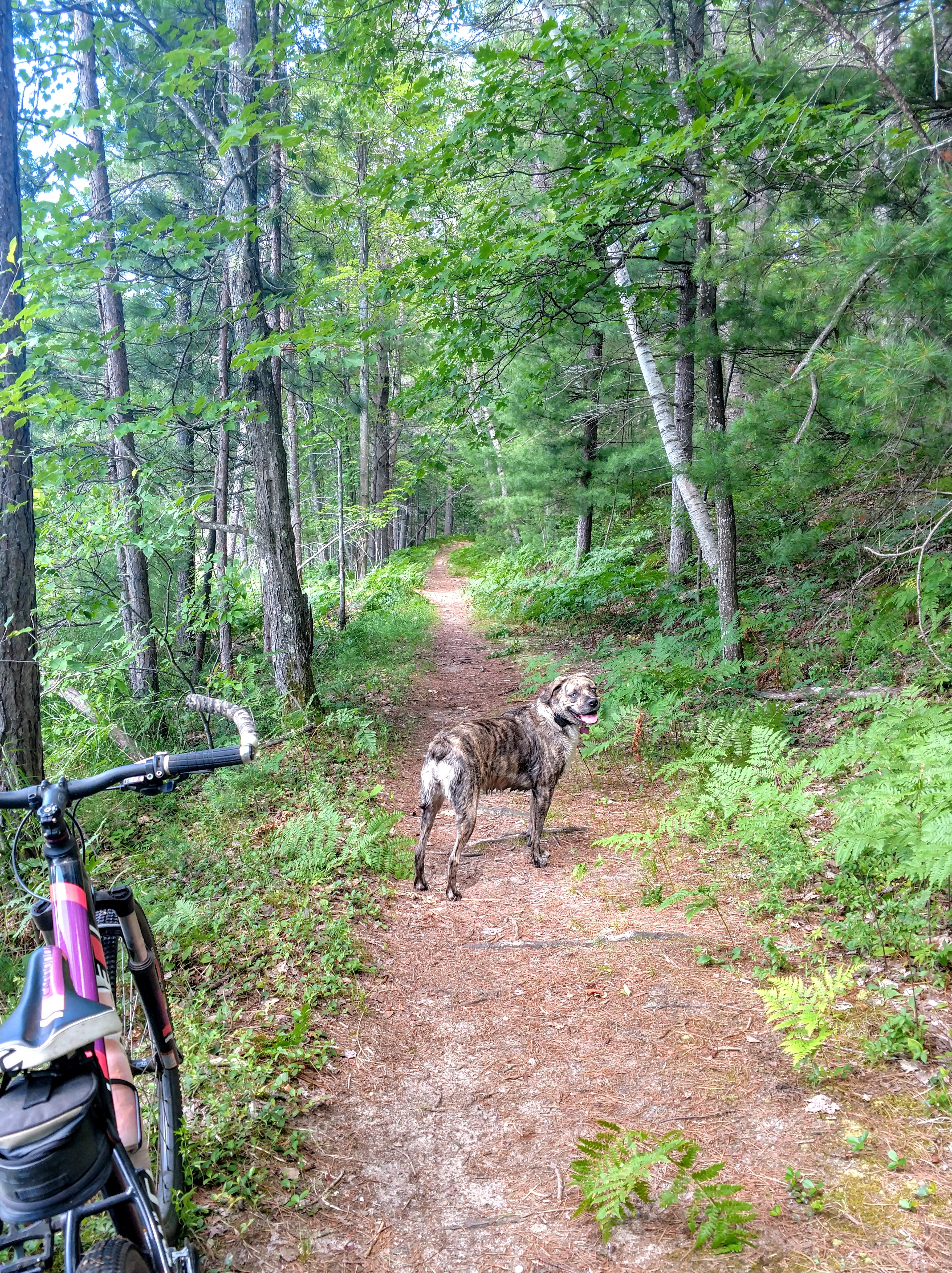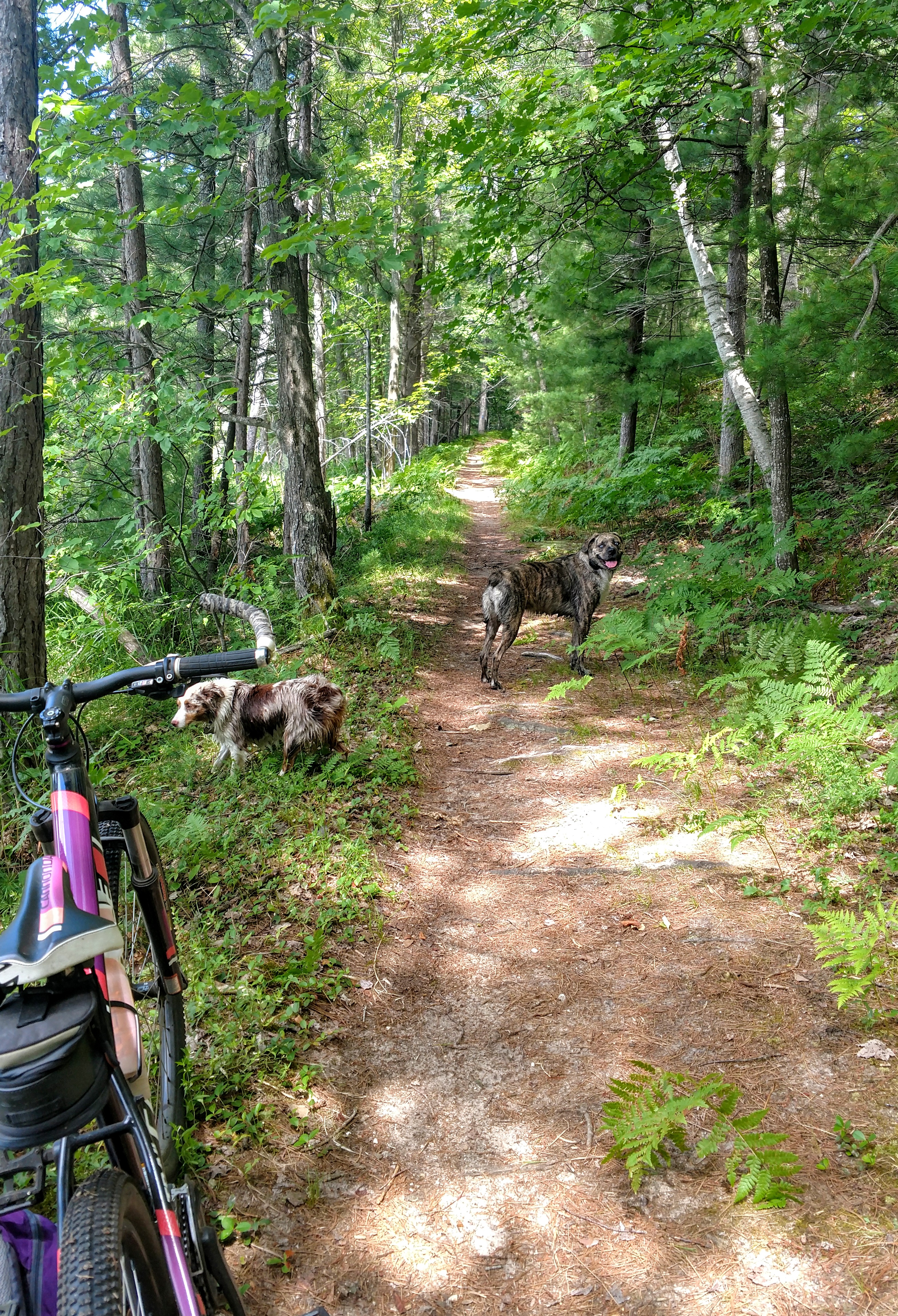 Bee did Great! Running alongside my bike like a pro. Stopping to swim with her big sister. 🐾❤️🐾❤️